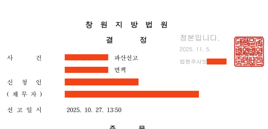 등기를 받자고 휴가를 쓸 수는 없으니, 다음날 우체국 고객센터에 전화해서 스티커 번호를 불러주고 등기번호를 받았다. 법원 민원실에 연락하여 등기번호를 불러주고, 사건번호를 알아냈다. 검색해보니 역시나 파산사건.